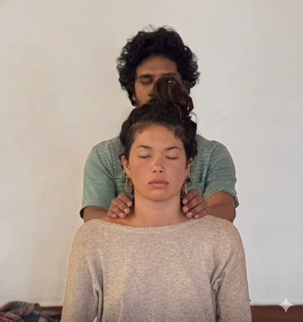 A gentle hands-on technique activating 32 points on the head to release mental clutter and stored patterns. This neuroscience-backed reset defragments brain synapses, bringing the mind into deep ease and neuroplasticity.